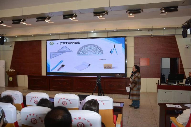 马慧芳老师开展了一场主题为“七年级数学学法指导”的讲座。马老师首先说明初中数学与小学数学存在显著差异,前者进度更快、更注重逻辑推理与解题过程,为家长们拨开初中数学学习的迷雾。马老师又从以下六个方面,深入浅出地讲解了如何高效学习数学:1.准备学习工具:养成良好习惯,学习工具整齐排列,为学习做好充分准备。2.提前预习:每天花5-10分钟预习新课,画出定理和公式,标记不理解的地方,尝试完成课后练习,带着问题走进课堂。3.把握课堂:做到“三勤”:手勤,多计算;嘴勤,多说数学语言;脑勤,勤思考,多动脑,让课堂效率最大化。4.复习与作业:先复习再作业,注重规范书写,培养正确的解题习惯;重视解题过程,避免“马虎”掩盖失误根源。5.及时纠错:建立错题本,定期整理错题,从错误中总结经验,提升学习效果。6.强化运算能力:运算能力是学好数学的“童子功”,要练就扎实基本功,告别粗心大意。