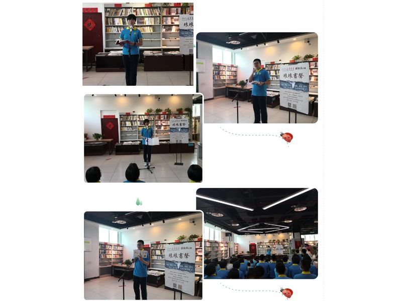 活动由我校志愿者张诗萌同学主持,诵读的开场由十中校长孙玉美与学生处主任李学庆、梁芳,教务处主任陈伟合作诵读《平语近人》中有关家庭教育的部分段落。随后,新乡书店副总经理郭辉首次分享作者未成书前的手稿--来自本土作家董传军、蔡静、王永强、王自亮的报告文学《大国口罩》,并向同学们介绍了我们本土作家眼中的、疫情下的新乡人民,用一个“口罩的力量”对全国抗疫所做出的巨大贡献。在良好的活动氛围中,十中师生纷纷登台,推荐自己喜欢的书目并深情诵读。8.1班路佳淼、8.2班毕婧、8.8班王海杰、8.13班唐梦轩、8.9班苗淮阳、8.5班郭景函、7.2曹恒宇等同学分别选读了《地板下的原子》《深笑》《这个世界不欠你》《唐诗宋词鉴赏》《c++入门经典》《哈佛家训》等书籍的片段,诵读活动气氛热烈。