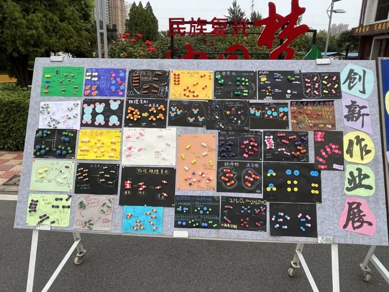 分子和原子一节内容抽象,是这节课的难点。微观模型制作,学生通过观察、动手、亲身体验的方式,初步理解化学现象的本质,从五彩缤纷的宏观世界步入充满神奇的微观世界,从而激发学习化学的兴趣。我们化学组老师们将作业与教学密切联系、与课程内容相结合、与学生实际相融合,设计了充满吸引力和创造力,更具思维深度的作业——探索微观世界之分子和原子。